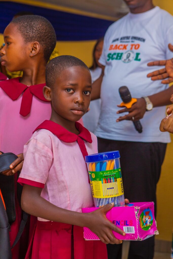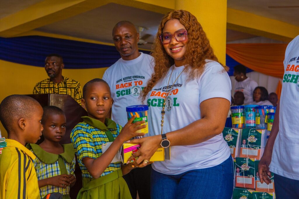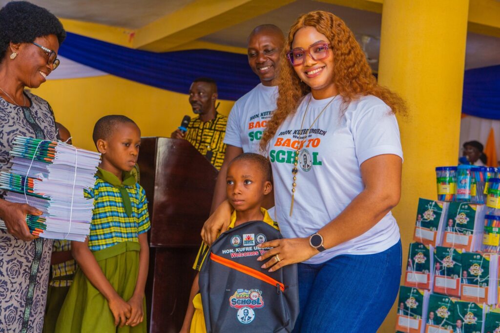 Speaking during the presentation, the Chairman, represented by his wife, Mrs. Precious Kufreabasi Umoren, said the project was designed to ease the financial burden on families and encourage learning among children.