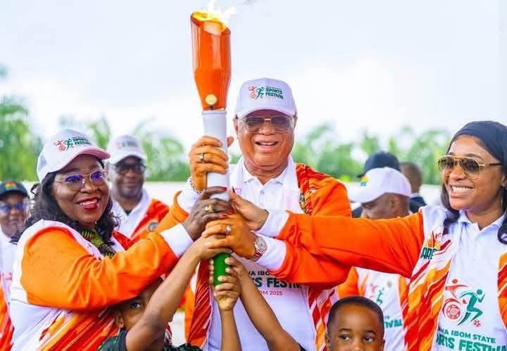 Akwa Ibom State Governor, Pastor Umo Eno has recieved the torch of unity as part of the build up to the State’s sports festival.